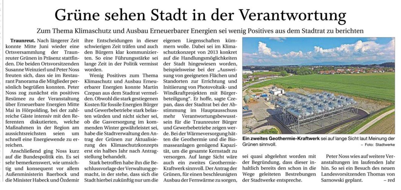 Die LIZ-Gruppe im Stadtrat Traunreut hat einen Antrag zur Prüfung zur Errichtung eines zweiten Geothermiekraftwerks